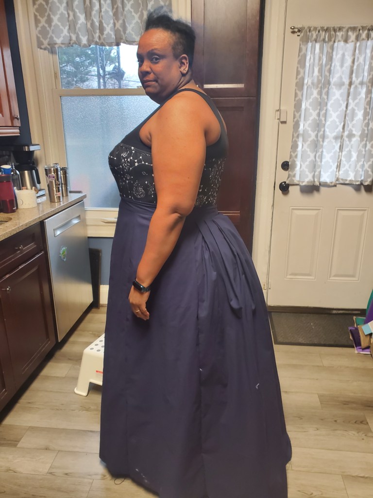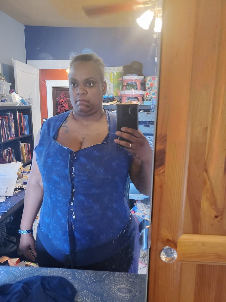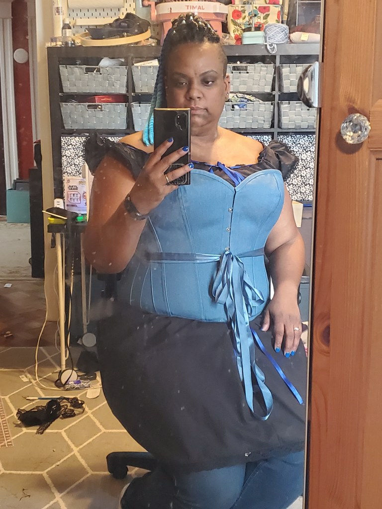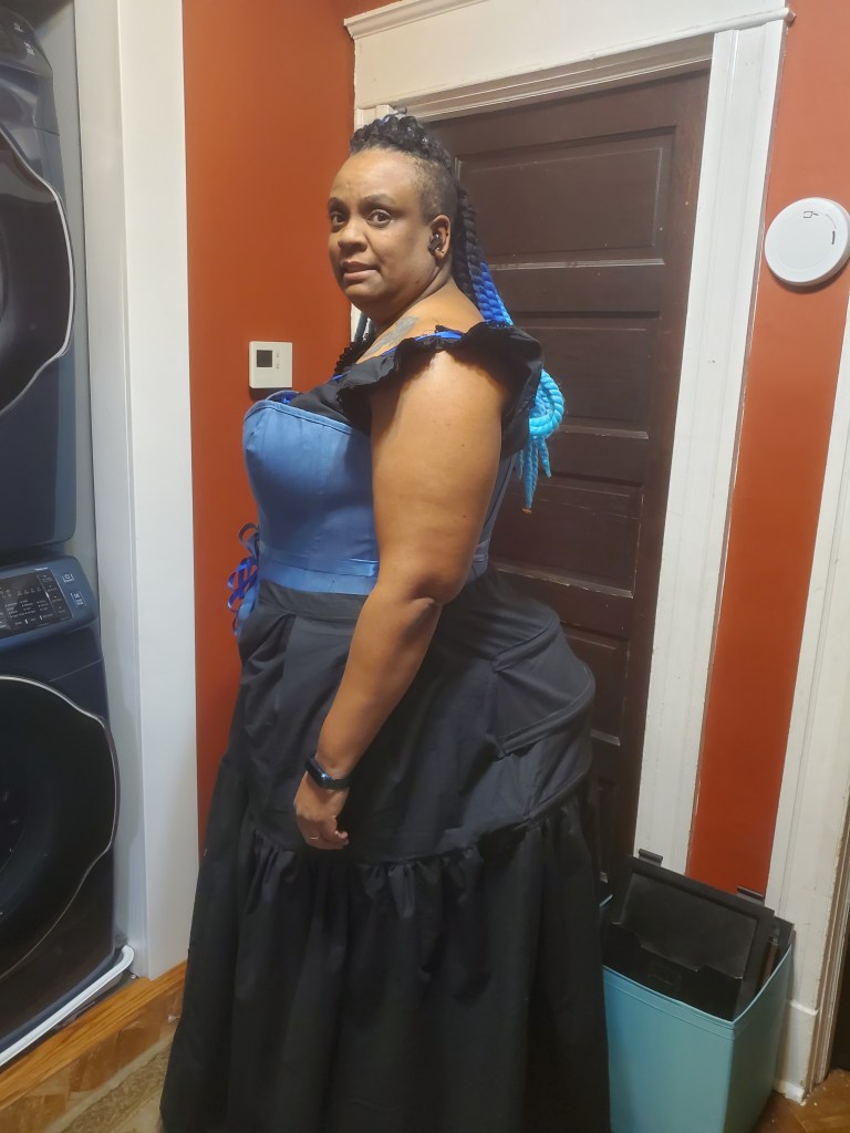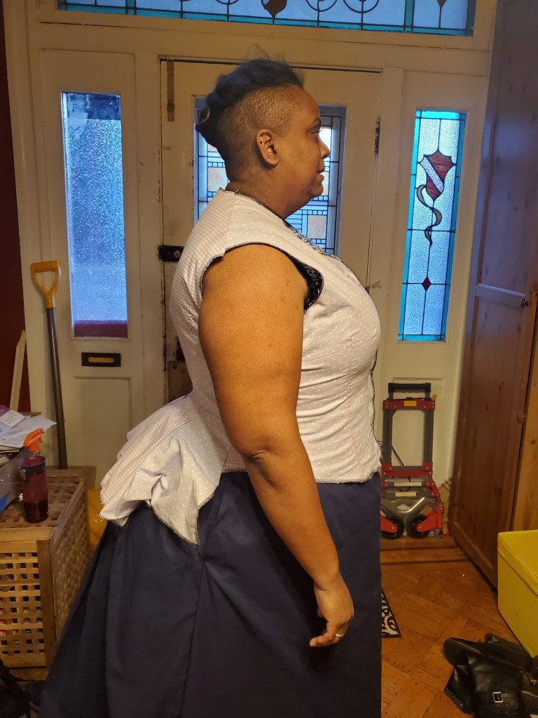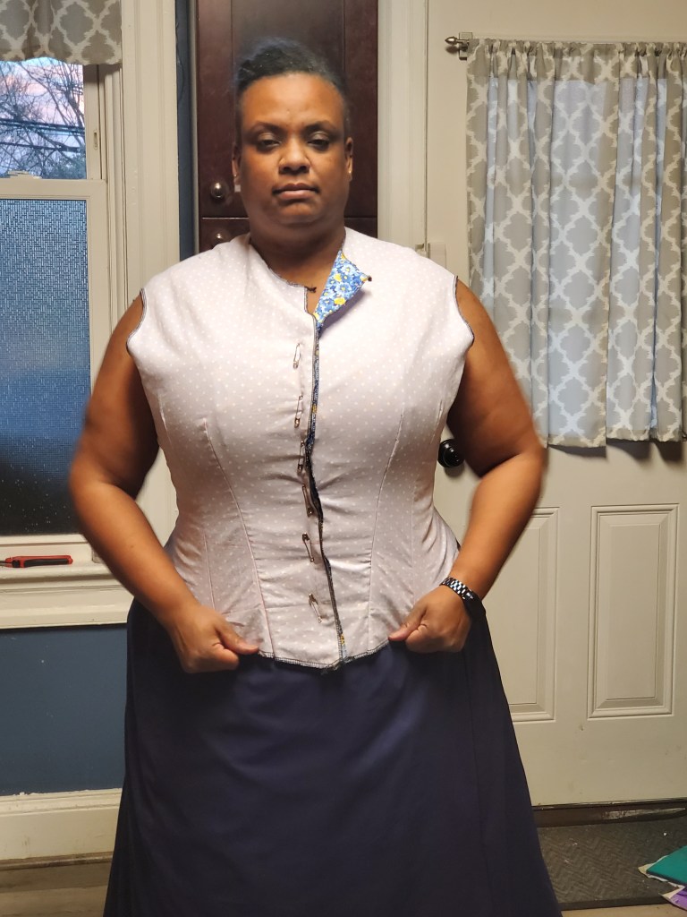 The perfect is the enemy of done. There are so many tiny screwups that no one but me will ever see. I was aiming for “historically adequate” as opposed to accurate so I used a machine to do the sewing, plastic boning, rotary cutters, and all sorts of modern conveniences.